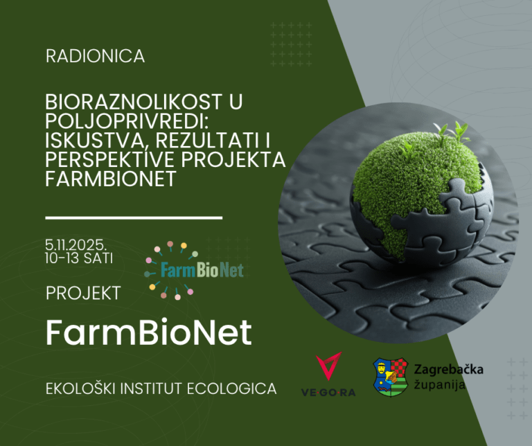 Pozivamo Vas na radionicu koju Ekološki institut ECOLOGICA organizira u sklopu FarmBioNet projekta. Radionicu je organizirana u suradnji s Upravnim odjelom za poljoprivredu, ruralni razvitak i šumarstvo Zagrebačke županije i Razvojnom agencijom Grada Velika Gorica VE-GO-RA.